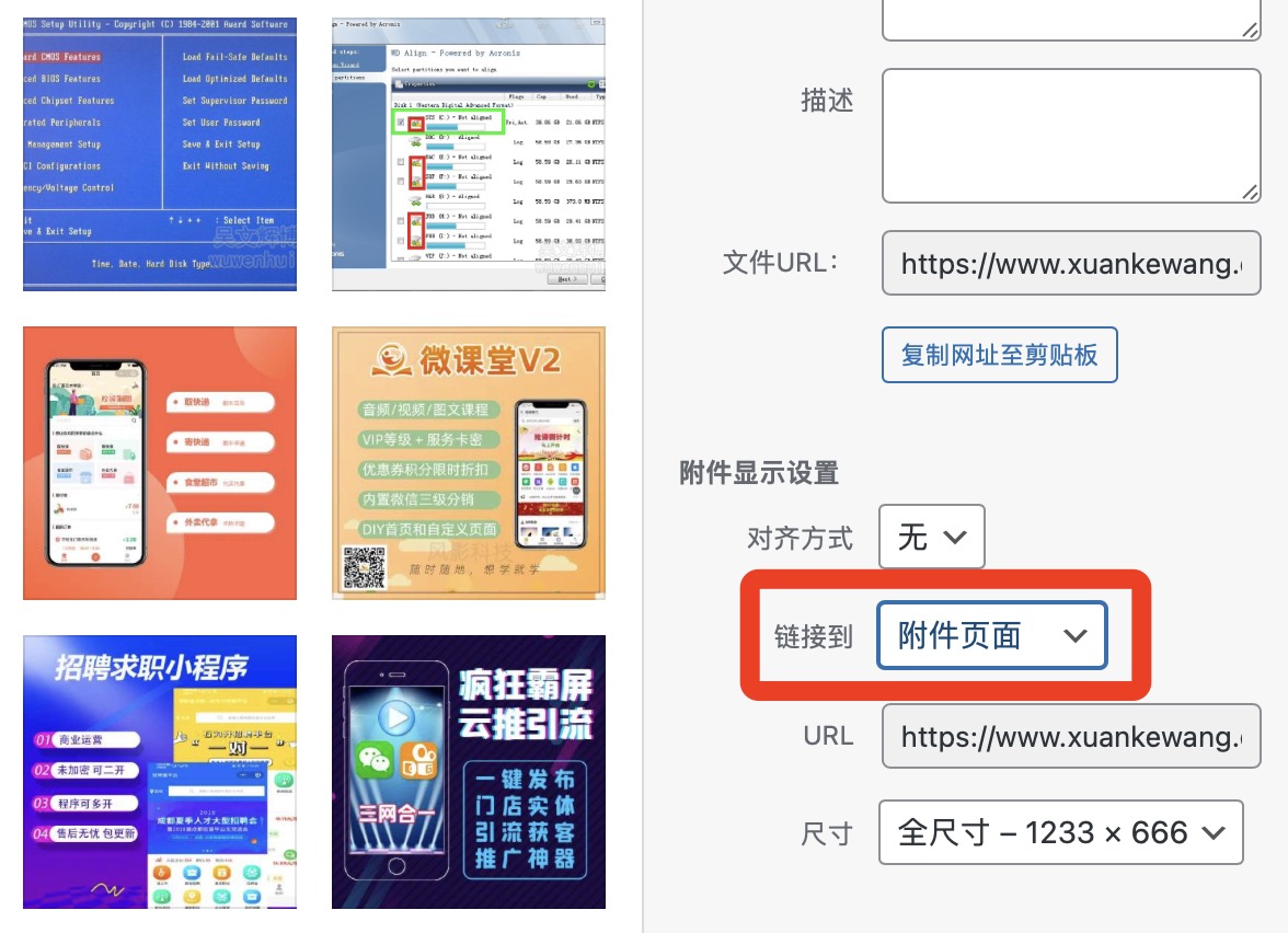 熟悉WordPress的朋友,应该知道WordPress “插入多媒体”有一个“链接到”选项,它是给媒体添加的链接方式。