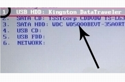 3、然后在启动项选择窗口中,选择usb驱动所在的位置,按回车键进入。